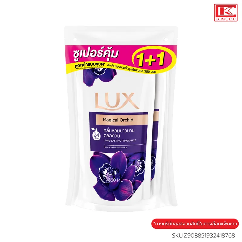 ลักส์ ครีมอาบน้ำ เมจิกเคิล ออร์คิด(ม่วง) แพ็คคู่ 400 มล.+400 มล.- ลักส์ ครีมอาบน้ำ สูตรเมจิกเคิล สเปลล์- ผสานคุณค่าจากฟลอรัลฟิวชั่นออยล์- กลิ่นหอมติดผิวยาวนานด้วยกลิ่นแบล็คออร์คิดและจูนิเปอร์ออยล์- ทำความสะอาดพร้อมบำรุงผิวของคุณให้เปล่งปลั่งสดใส