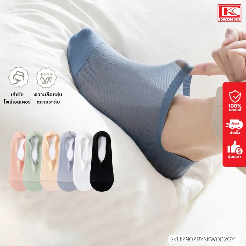 · ถุงเท้าตาข่าย มี 6 สี ตาข่ายระบายอากาศ มีซิลิโคนกันลื่น ป้องกันการลื่น ถุงเท้าไร้ตะเข็บ เสริมความสบาย ส้นถุงเท้าพอดีเท้าและทนทาน ยืดหยุ่นใส่สบาย เหมาะสำหรับผู้หญิง