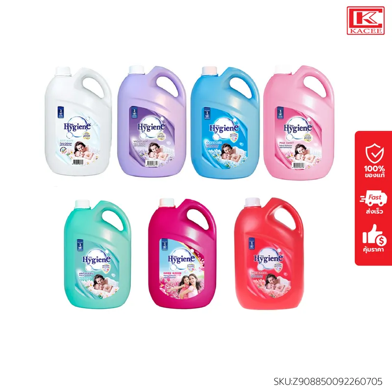 (มีให้เลือก 7 กลิ่น)Hygiene ไฮยีน น้ำยาปรับผ้านุ่ม สูตรมาตรฐาน แกลลอน 2,800 มล.(ขาว/ฟ้า/ชมพู/ม่วง/บานเย็น/แดง/เขียว) ผ้าสะอาดหอมติดทน