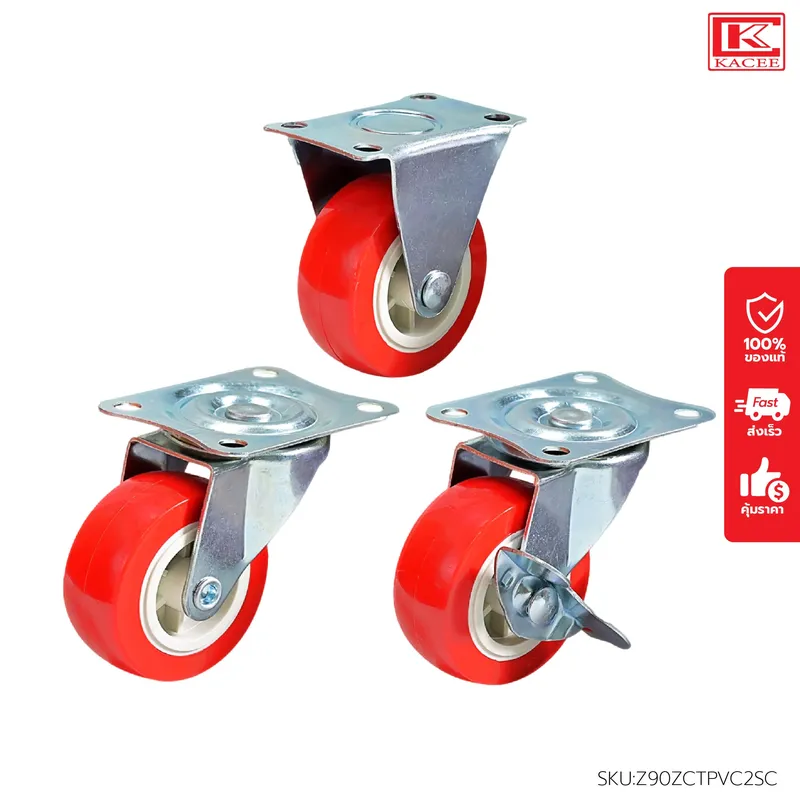 ■ วัสดุตัวล้อ: PVC และ PU คุณภาพสูง ไม่แตกง่าย / ยาง / โครงเหล็กชุบสังกะสี กันสนิม