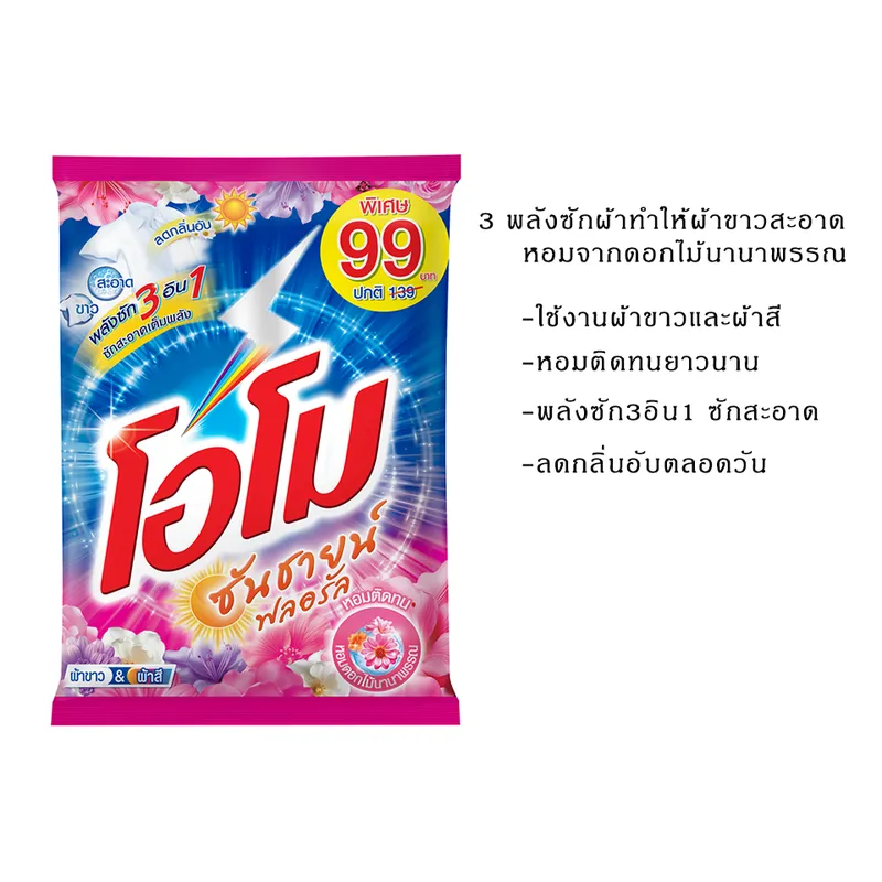 โอโม ซันชายน์ เปลี่ยนผ้าของคุณให้หอมสดใสทุกอณู ด้วย 3 พลังซักผ้าที่จะทำให้ผ้าขาว สะอาด ขจัดคราบสกปรก
