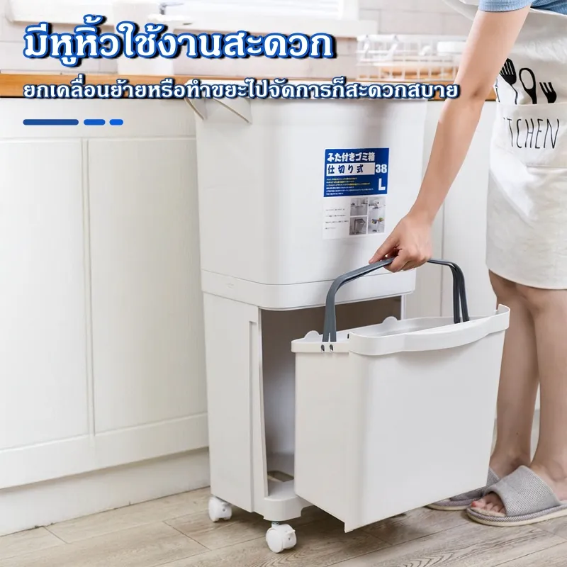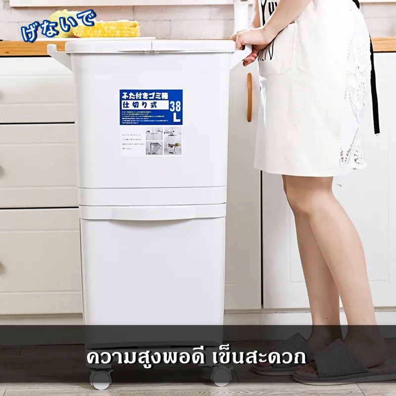 ถังขยะแยกประเภท 38 ลิตร จัดระเบียบขยะในบ้านให้ง่ายขึ้น ด้วยถังขยะแบบแยกประเภท ดีไซน์ทันสมัยเหมาะกับทุกห้องในบ้าน ทั้งห้องครัว ห้องนั่งเล่น หรือสำนักงาน มาพร้อมล้อเลื่อนที่เคลื่อนย้ายสะดวก และระบบเบรกล็อคเพื่อความปลอดภัยไม่เลื่อนไปมา