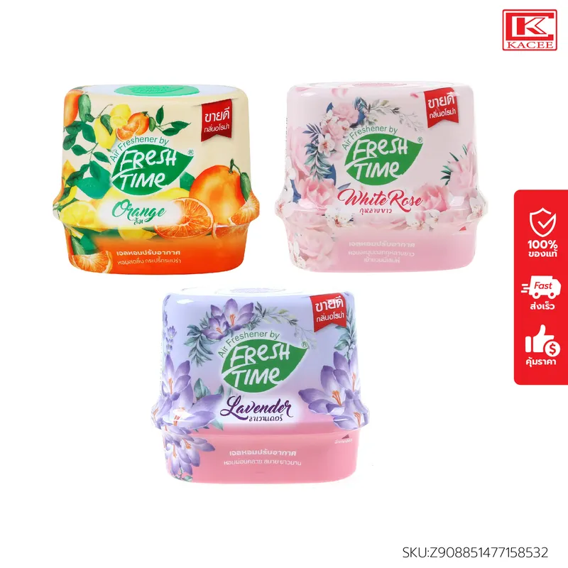 (มีให้เลือก 3 สูตร)Freshtime เฟรชไทม์ เจลหอมปรับอากาศ หอมสดชื่น กลิ่นส้ม,ลาวนเดอร์,ไวท์โรส