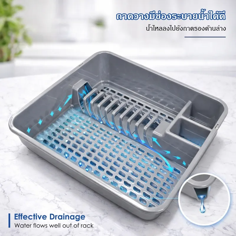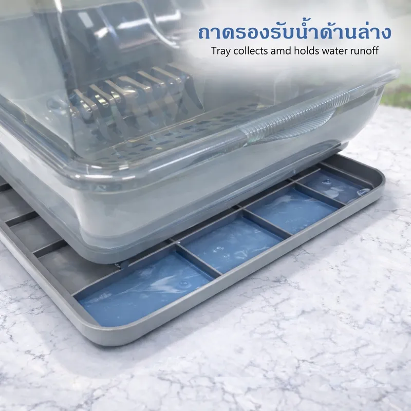 ช่วยให้น้ำแห้งเร็วไม่อับชื้น ลดการสะสมของแบคทีเรียถาดคว่ำจานมีช่องระบายใหญ่ระบายน้ำได้ดีมีถาดรองน้ำด้านใต้สามารถถอดออก เพื่อเทน้ำทิ้งได้ ขอบโค้งมน ลดการเกิดอุบัติเหตุ