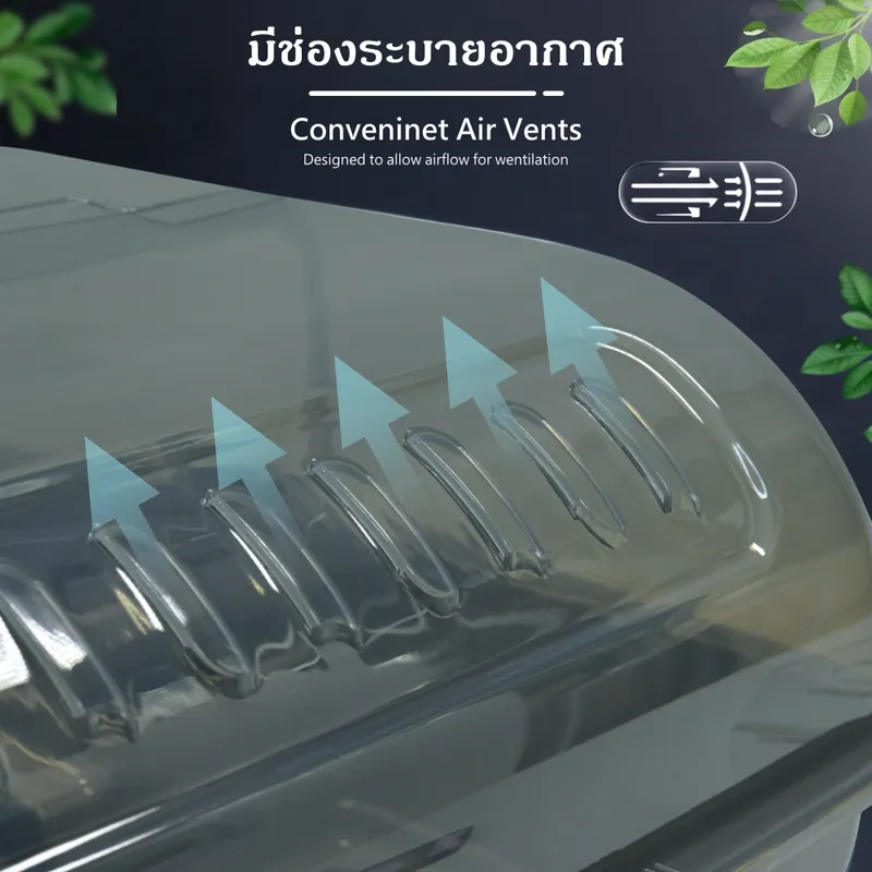 ดูสะอาดตา ฝาครอบโปร่งใส ป้องกันฝุ่นและแมลงช่วยรักษาความสะอาดของภาชนะพร้อมมองเห็นด้านในได้ชัดเจนฝาครอบมีตัวล็อกสามารถถอดออกเพื่อทำความสะอาดได้มีช่องระบายอากาศ