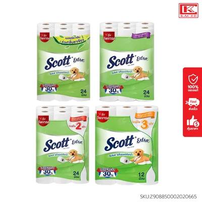 Scott สก๊อตต์ กระดาษทิชชู่ เอ็กซ์ตร้า แพ็ค 24 ม้วน มี 4 สูตร หนา 2 ชั้น เหนียว นุ่ม ซึมซับ