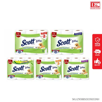 Scott สก๊อตต์ กระดาษทิชชู่ เอ็กตร้า แพ็ค 6 ม้วน มี 5 สูตร หนา 2 ชั้น เหนียว นุ่ม ซับดีเยี่ยม ธรรมชาติ ลดสะสมแบคทีเรีย