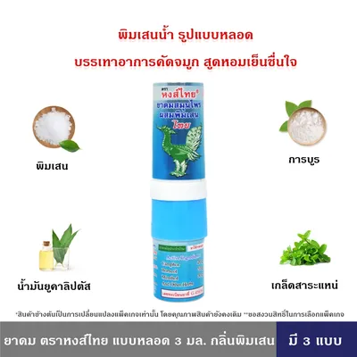 HongThai ยาดมสมุนไพร ตราหงส์ไทย แบบหลอด 3 มล. กลิ่นพิมเสน 1 ชิ้น 6 ชิ้น 12 ชิ้น แบบ 2 หัว ใช้ดมและทาในหลอดเดียวกัน ชนิดหลอดพกพาง่าย กลิ่นหอม สดชื่น ใช้ดมหอมชื่นใจ