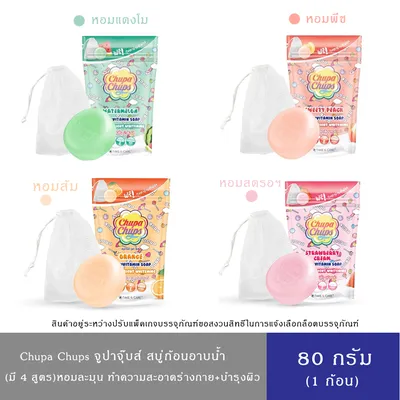 (มีให้เลือก 4 กลิ่น)อยู่ระหว่างปรับแพ็คเกจ Chupa Chups Soap สบู่อาบน้ำ จูปาจุ๊บส์ สบู่ก้อน มัลติวิตามิน ทำความสะอาดพร้อมบำรุงผิว 80 กรัม