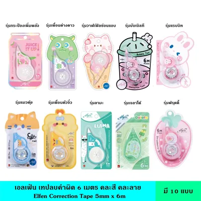 Elfen เอลเฟ่น เทปลบคำผิด 6 เมตร รุ่นแมวตุ้ย คละสี คละลาย เนื้อเทปคุณภาพดี ไม่ขาดตอน ลากได้ดี ไม่สะดุด น้ำยาลบคำผิด Chubby Cat ชื่อสินค้า เอลเฟ่น เทปลบคำผิด 6 เมตร รุ่นแมวตุ้ย